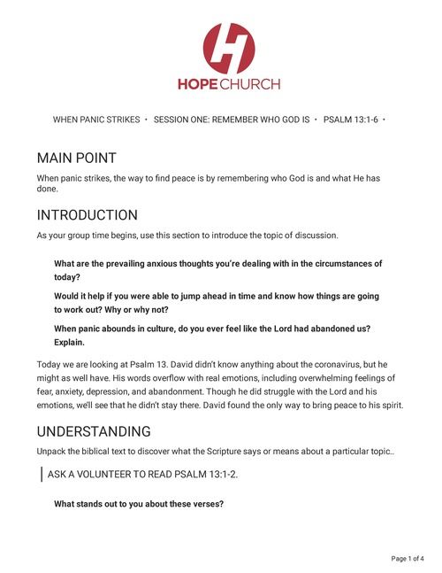 When panic strikes, the way to find peace is by remembering who God is and what He has done.