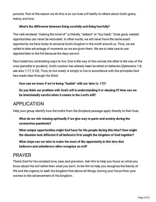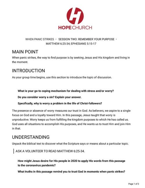 When panic strikes, the way to find purpose is by seeking Jesus and His kingdom and living in the moment.